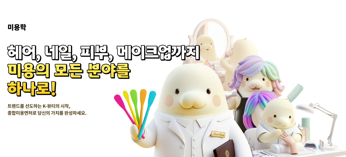 수강료 최대 할인 미용학 진로 특강 전 과목 교재 무료 제공 학위, 면허 취득까지 밀착 관리
