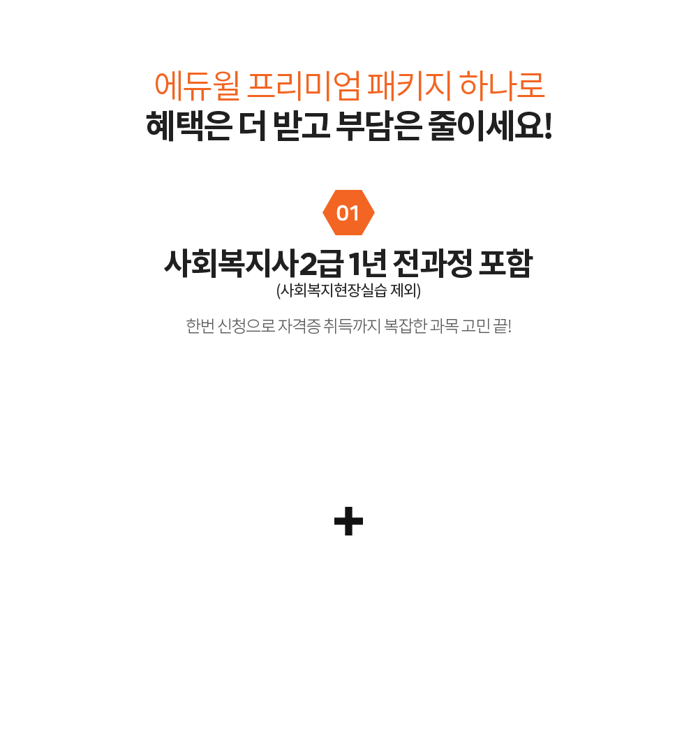 13과목 패키지 : 1학기 8과목 + 2학기 5과목 (사회복지현장실습 미포함) |